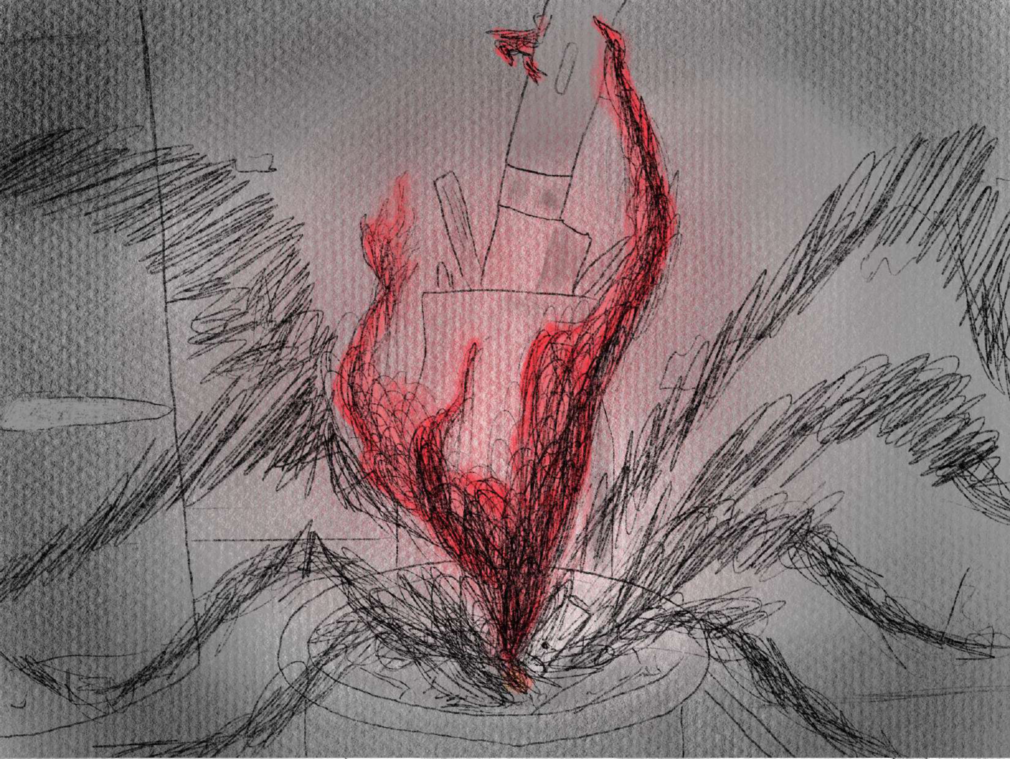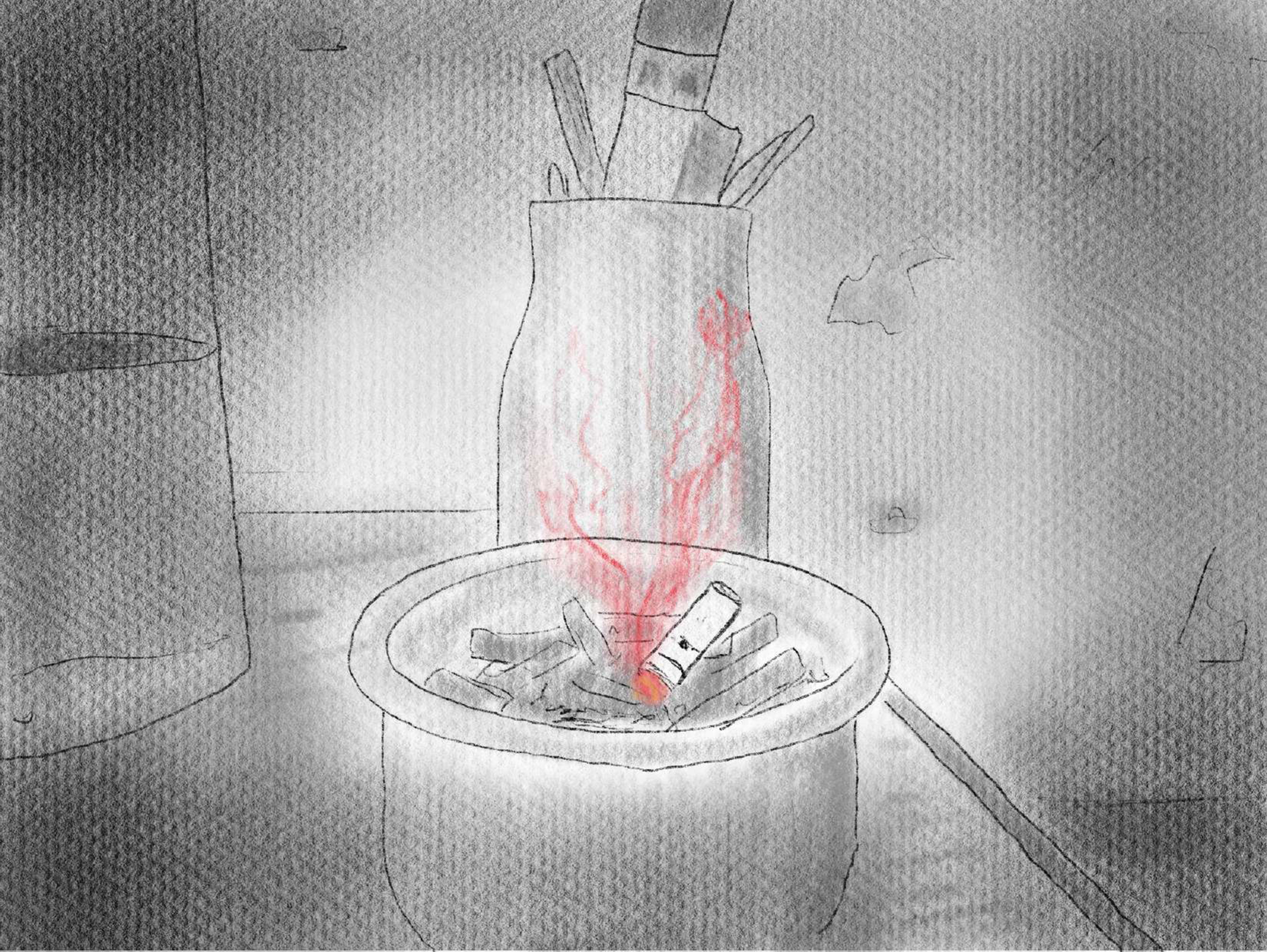 2 (7) | Smoke rise up from the ember. | Smoke drawn over. Slightly warp around the smoke to remove the sense of realism. | Closeup |