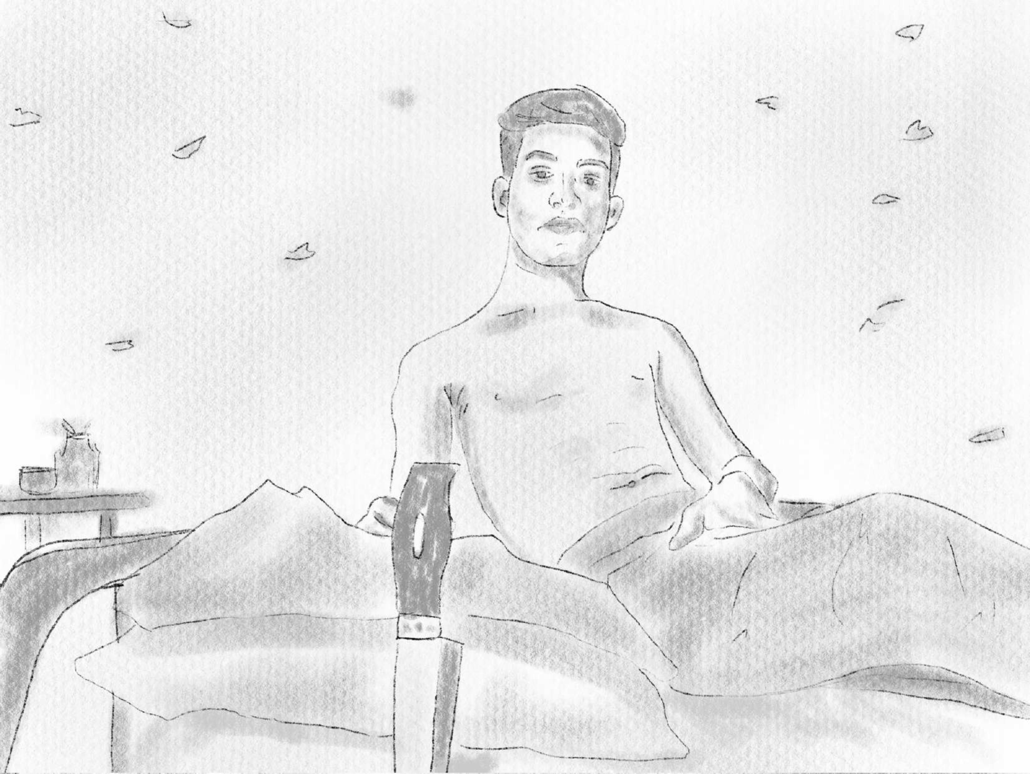 2 (2) | He walks to the bed. | Wide/Medium | |